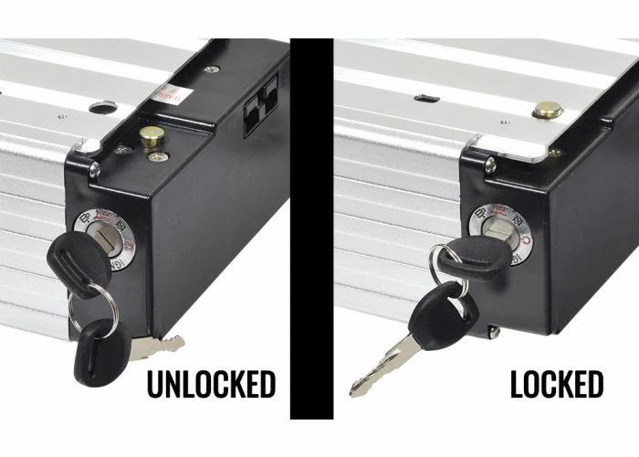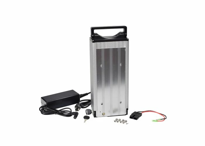This battery pack was designed to be compatible with most ebikes and these 48 Volt 10 Ah Lithium-ion electric bike battery packs come with their own 48 volt, Lithium-compatible battery charger. But we make it even better by giving you the option of a convenient battery rack. The rack mounts over your rear wheel and behind the seat just like any other rear-mount cargo rack. The secret to its success is the double platforms; while the upper level makes a truly useful cargo rack, the lower level platform is designed to hold your battery pack out of harm’s way, snug and secure in its own protective cage.